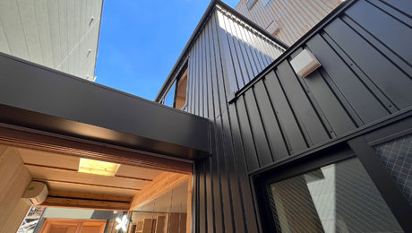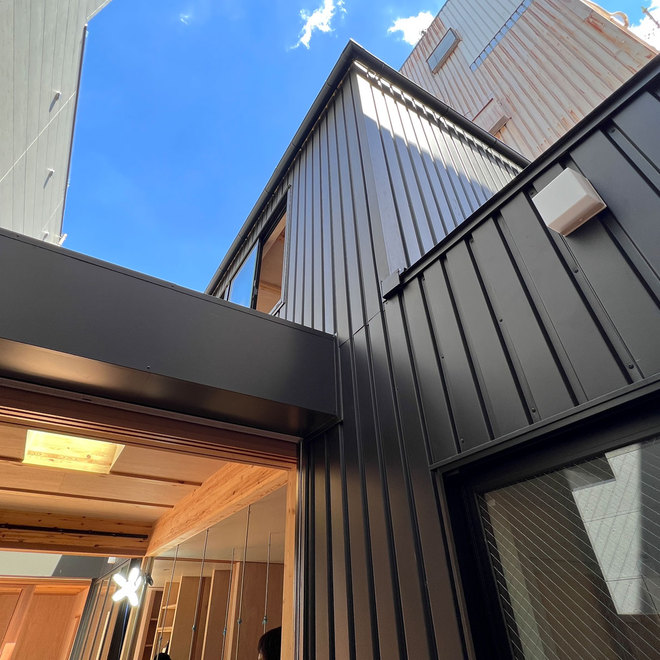 概要:町屋のリノベーションは構造補強や設備改修に大きな費用がかかるため、建て替えよりもコストが嵩んでしまう場合が多々あります。今回はお施主様に町屋に住みたいという強いご希望があったことに加え、厳しめのコストの制約と、新築した場合にニ面道路からのセットバックが必要な敷地条件のためリノベーションを選択し、どうすれば町屋をローコストかつ現代的な住み方に見合った住宅へと改修できるか試行錯誤しました。大掛かりになる外周部分の改修を最低限に抑え、半間内側に入った部分に耐震性と断熱性を持たせて魔法瓶化することで、快適な居住空間をつくりつつ、回遊性のある通り庭や縁側といった町屋ならではの半屋外空間を生み出しています。