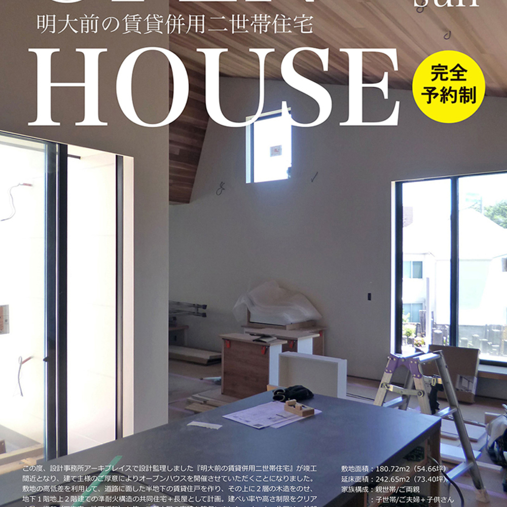 この度、設計事務所アーキプレイスで設計監理しました『明大前の賃貸併用二世帯住宅』が竣工間近となり、建て主様のご厚意によりオープンハウスを開催させていただくことになりました。