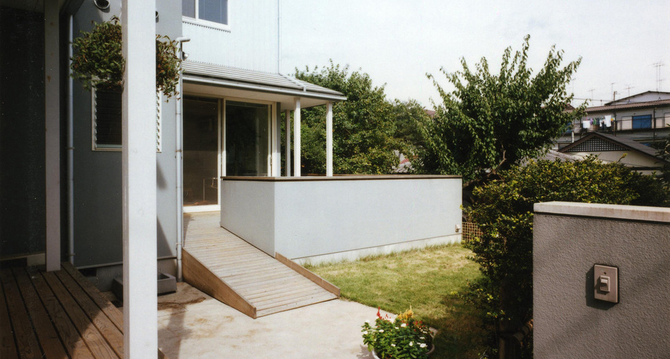 車椅子用のスロープは、玄関を目指すのではなく、デッキに設けた方がとても簡単です。