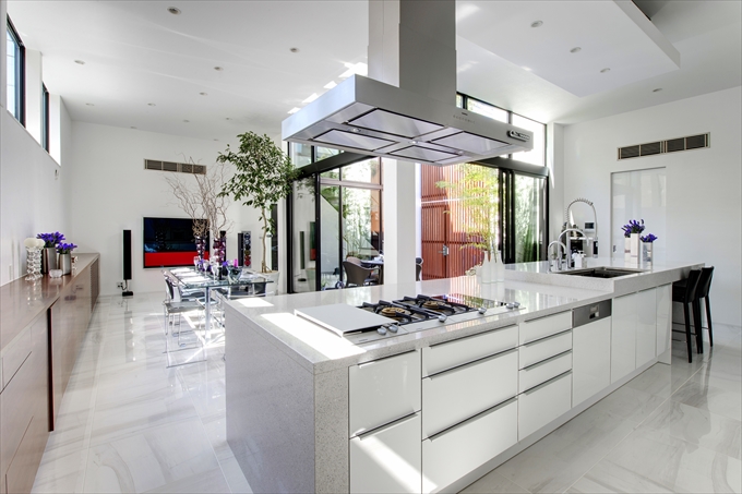 独立型キッチンに閉鎖感や圧迫感を感じている人にとって、キッチンからリビングを眺められるオープンキッチンは憧れなのではないでしょうか。最近の新築物件やリノベーション物件の多くは、対面式のオープンキッチンが主流となっています。こちらのお宅のように、I型のオープンキッチンタイプは直線上に全ての機能が並んでいるため、使い勝手が良くなります。