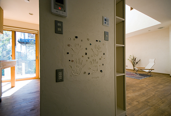 日本古来からあるイ草の畳も調湿効果のある材料としてはすぐれものです。イ草には優れた吸湿能力があり、湿度が高い時は湿気を吸い取り、室内が乾燥してくるとたくわえた水分を放出します。畳に寝転ぶといつでもサラサラした感触なのはそのためです。写真のお宅はさらに壁に「月桃紙」という優しい素材で人気の和紙を張って調湿効果を図っています。月桃は独特の芳香があり、シロアリ等の害虫を寄せ付けない効果もある植物です。
