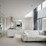 光を通し、下がよく見えるガラスの階段。高いところが怖いという人はちょっと苦手かもしれません。空を望む吹抜け空間に設置されているため、上からの光が階下に届きます。ガラスの階段はライトボックスの役目を果たし、窓を大きく取れない家の中に明るい光を取り込む役割を果たします。住宅密集地の狭小住宅で取り入れてみたいアイディアです。