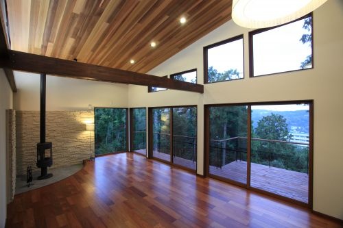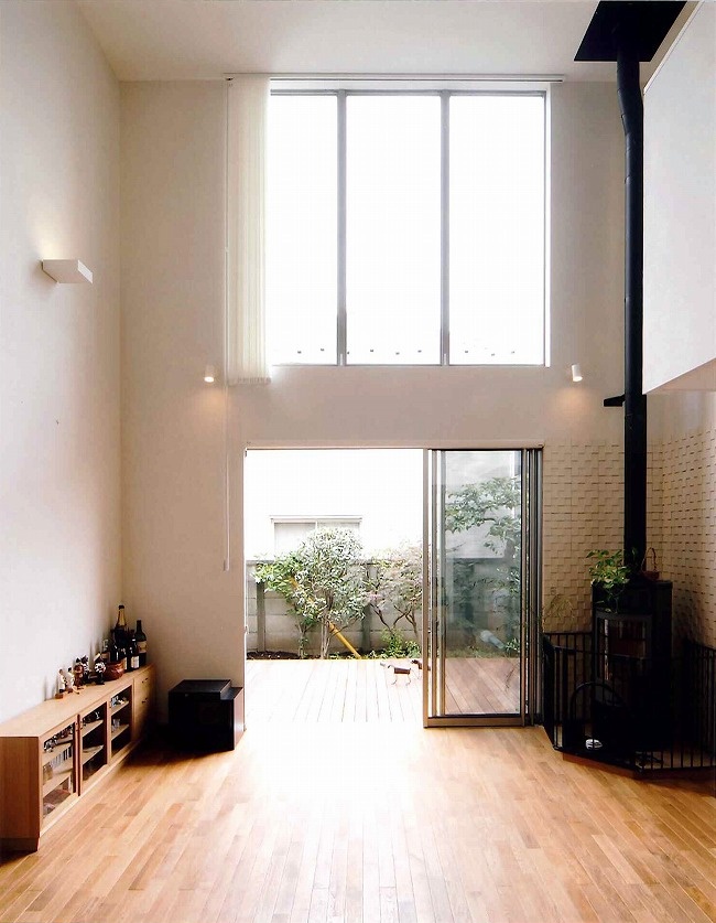 吹き抜けと大開口を持つ大空間も、暖炉がしっかりと暖めてくれる!
