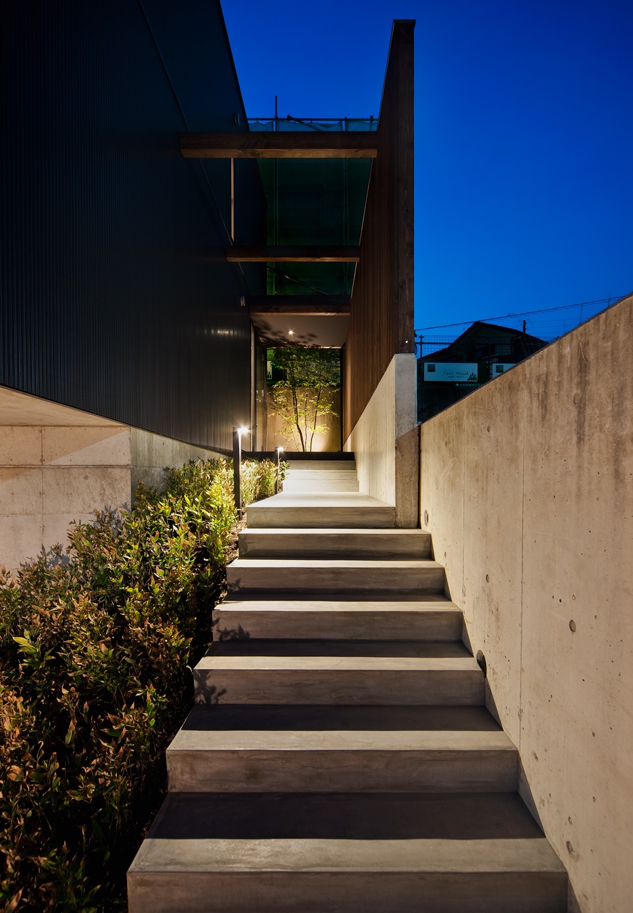 土地の高低差を活かすには?と考えた際に生まれた、階段状のアプローチ。