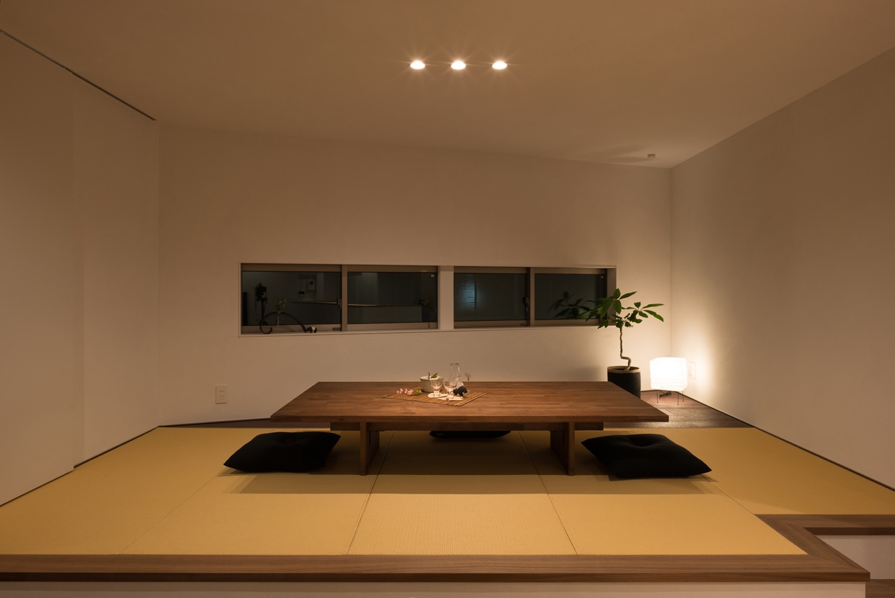 小上がりの畳コーナーの窓は低くサイズは小さめ、間接照明は直置き型にすることで視点を低くしています。