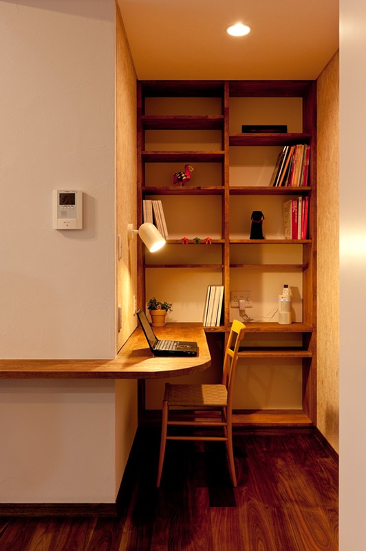空間の隅に作られたこちらのスペース。書斎として、ワークスペースとして、一人だけの時間をゆったり過ごしたい時の空間として……。