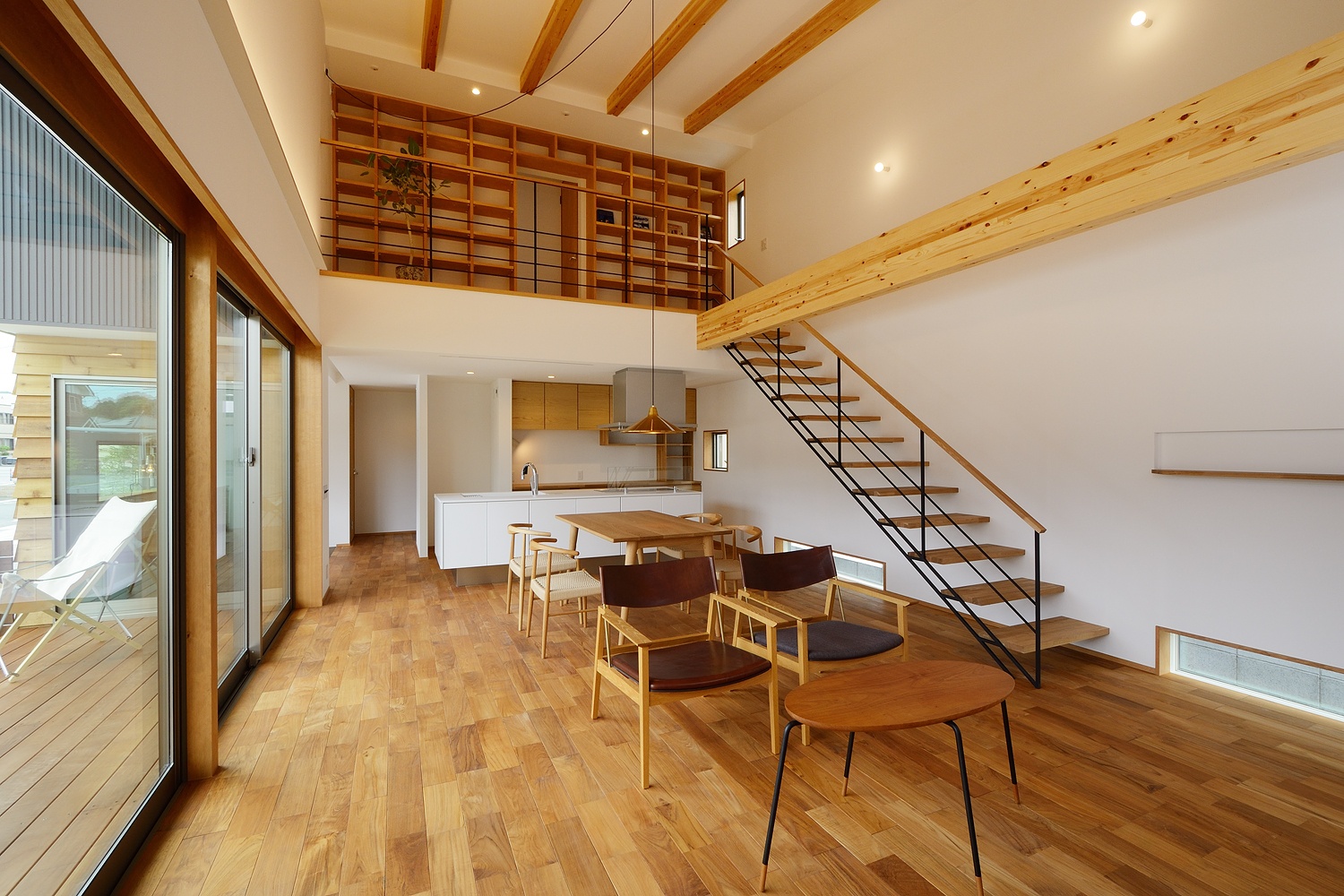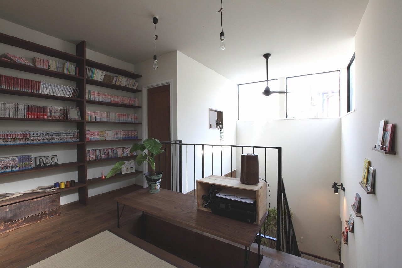 本と共に暮らす生活、とても素敵ですね。家族が寛ぐフリースペースとして重宝されていることでしょう。