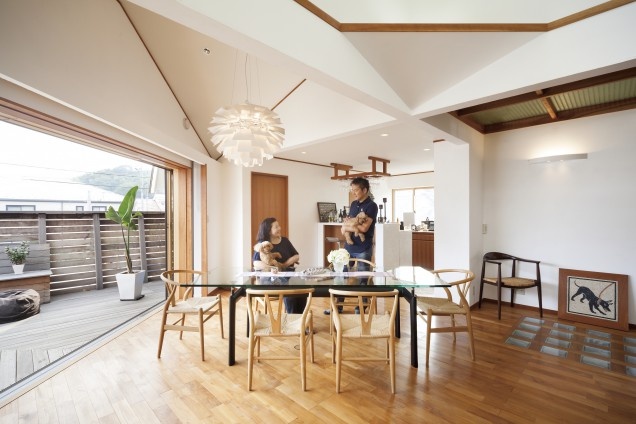 広々とした開放感ある空間は、人はもちろんペットも大喜び。屋内を走り回るだけでなく、ウッドデッキにも出て外の空気を感じながら遊ぶことができます。