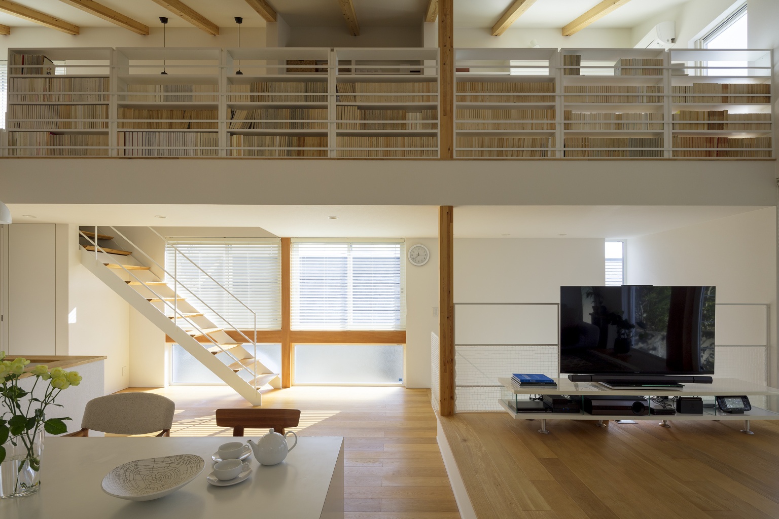 高さは低く抑え横幅を広くとった本の収納方法により、ロフトからの圧迫感を感じさせないようにしています。