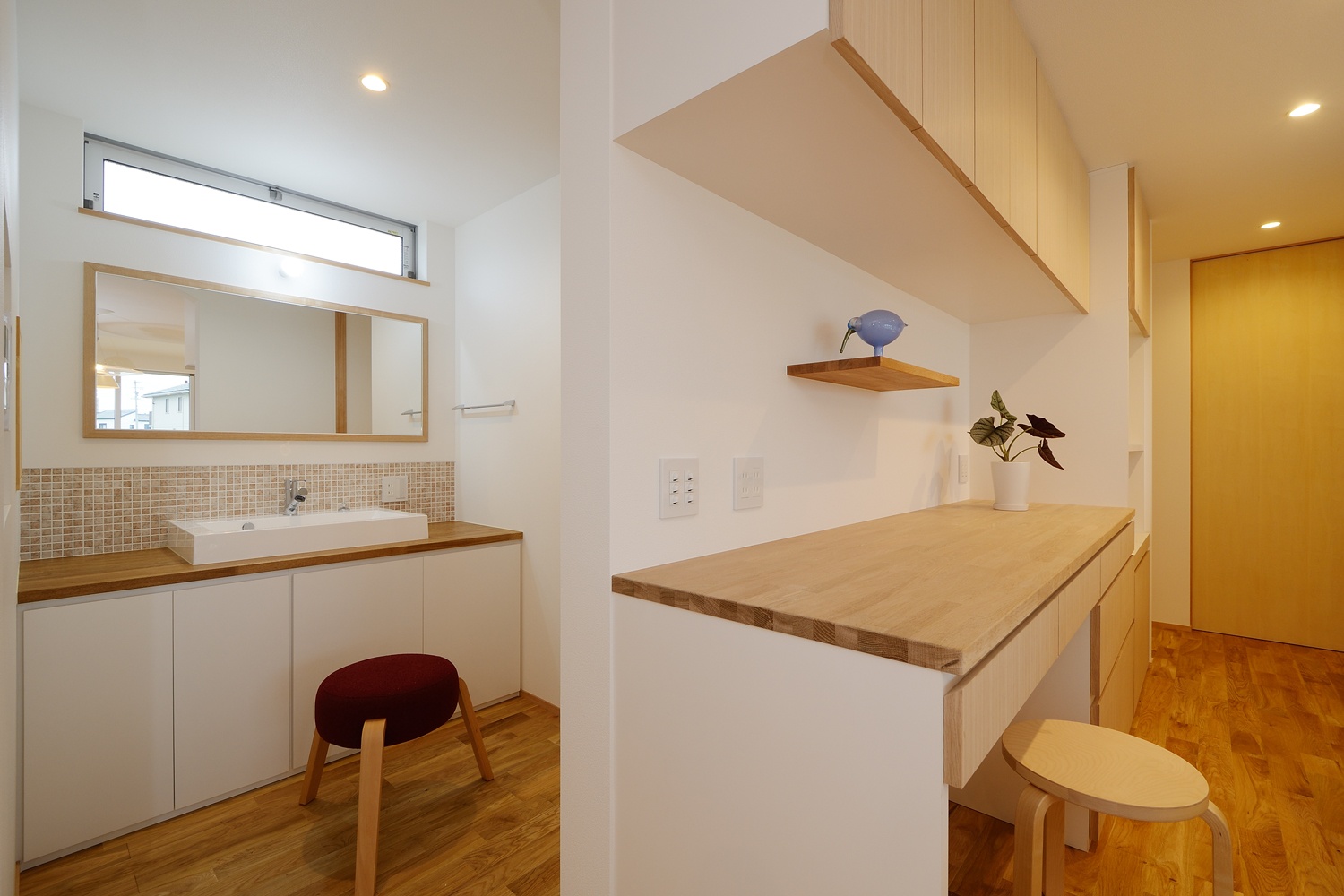 廊下を活用した洗面スペース