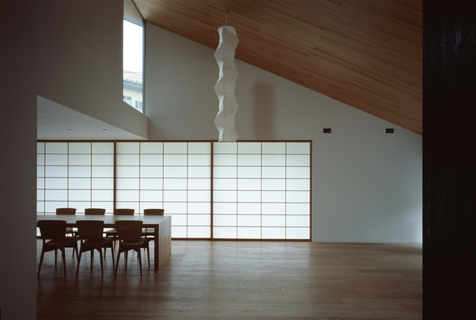 イサム・ノグチのモダンな照明器具がアクセントとしてこの空間を引きしめています。