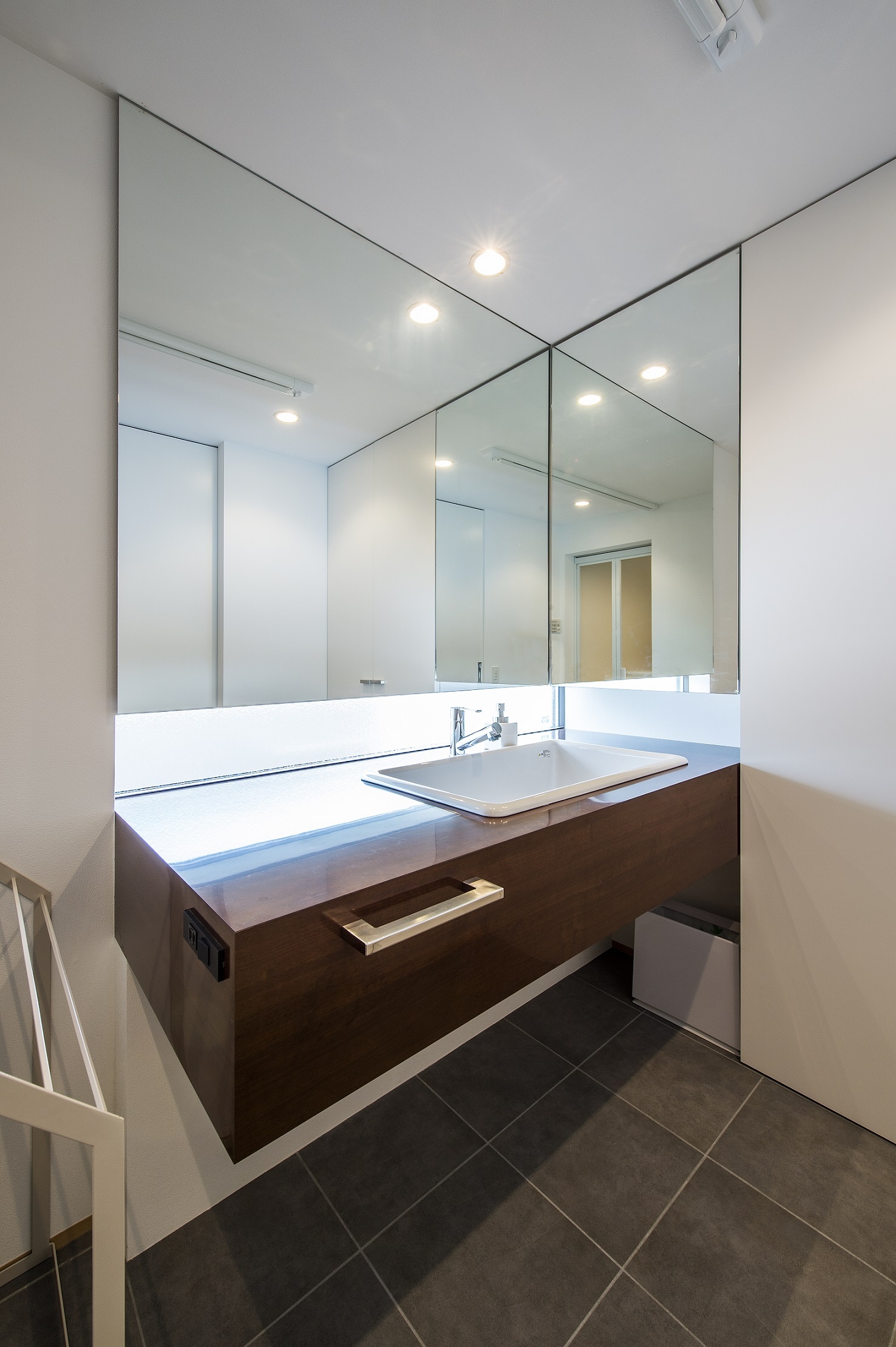 1階の洗面所とは別に、2階にも洗面コーナー設置した例。