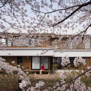 手前は折板屋根のあるガレージ、奥は空へと開かれた中庭という構成になっています。