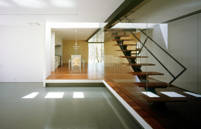 介護が必要になった家族と暮らす、このお宅。介護の為というのはもちろんでしょうが、フラットでシンプルなデザインが、とてもカッコいいです。そして介護用のスペースとして作られ部屋の間仕切りはガラス。これなら家族の目がいつも届くでしょうし、安心ですよね。部屋の奥のスペースにも光が優しく届いていい雰囲気です。