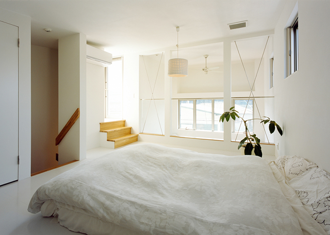 スキップフロアを有効活用した寝室。