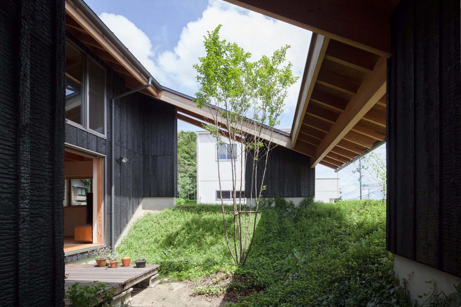 2階から1階までふかーい屋根が掛かったこのお宅。その屋根の真ん中にぽっかりと穴が開いています。