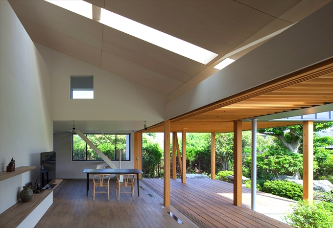 犬にとって人間サイズの階段は負担が大きいものです。そう考えると2階建てなどの1戸建てより愛犬と暮らすにはマンションの方がいいのでは?なんて思うかもしれませんが、なんとこのお宅、スキップフロアで繋がれたフロアには階段がなく、全てがスロープなのです。またスロープは庭へと続く外部のデッキにも設けられているので、家の中から外まで自由に走り回れますね。