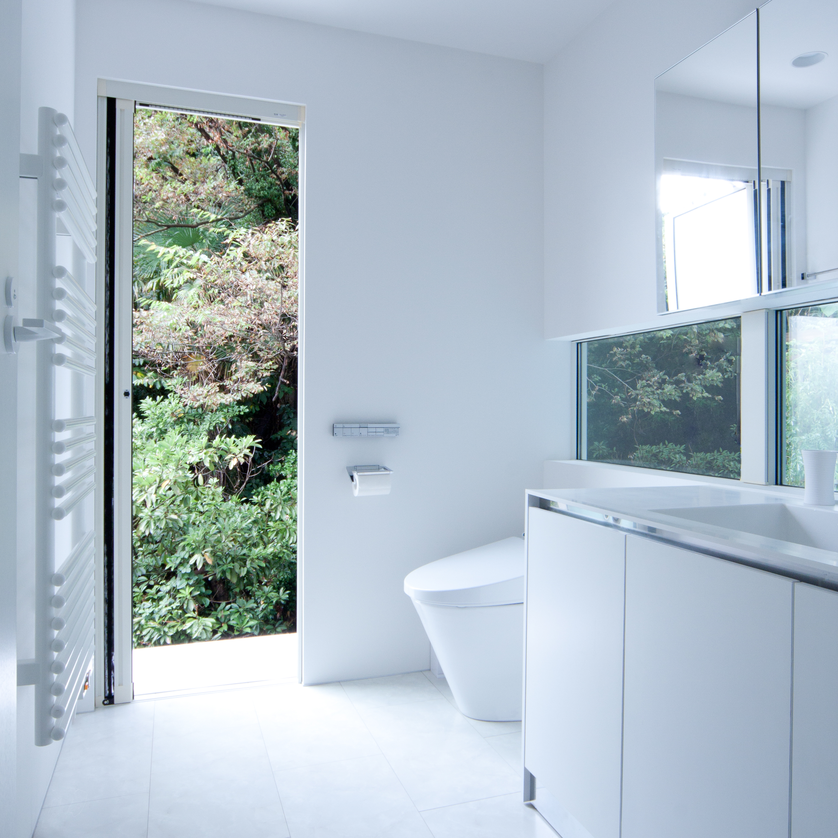 光を十分に取り入れ、さらに白を基調にすることで、実際のスペースよりも広く見える効果も得られます。トイレにも自然光は大切。それだけで印象が大きく変わります。
