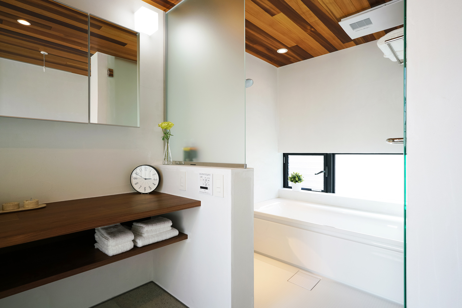 程よい色味が空間のアクセントになり、ハイセンス感抜群のバスルームに仕上がりました。