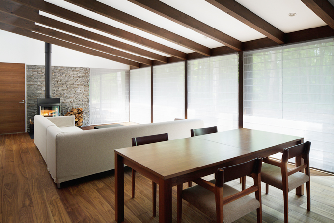 日差しの入りが強く熱がこもるお部屋には「ハニカムブラインド」が最適。ハニカムの名前は、横から見た時の構造が蜂の巣の形に似ていることに由来します。この蜂の巣状の空洞部分こそが断熱の役割を果たしてくれ、同時に省エネにもなる優れもの。さらに、ウィンドウ上部から自然光を入れながら目線レベルのプライバシーを保つなどの要望に対応できるオプションもあります。リビング、ダイニング、ベッドルームに。