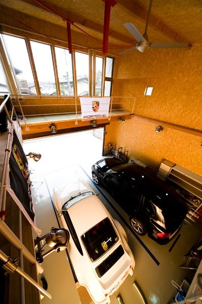 最後にご紹介するのは、何とインナーガレージが吹き抜けの住宅です。現在は2台のレーシングカーが置いてありますが、将来的にはリフトの設置やキャンピングカーの購入も検討中。そのために天井を6mの高さに作ってあるのだそうです。