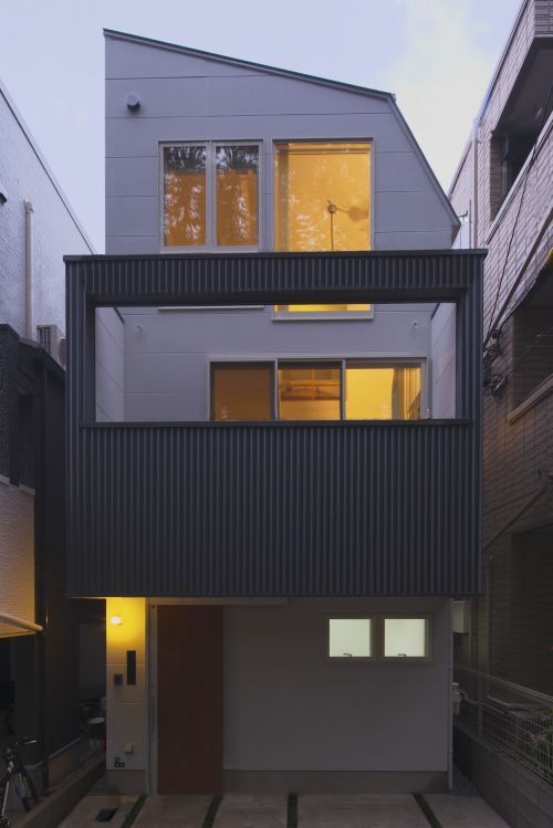 敷地面積45m²、延べ床面積68m²にもかかわらず、1階には店舗を併設しているお宅です。住宅密集地に建ちながら内部が明るいのは、ロフト上にあるトップライトとロフトの窓に繋がる大きなテラスからの光や風を、吹き抜けやグレーチングを通して2階にも届けているからです。また、洗面とトイレを浴室の隣のスペースにひとつにまとめ、広々と使用しています。床は浴室と同じFRP(繊維強化プラスチック)を採用。強度と耐水性にすぐれ掃除がしやすいのも魅力です。夏にはスカイツリーを背景に隅田川の花火大会を堪能できる抜群のロケーションです。
