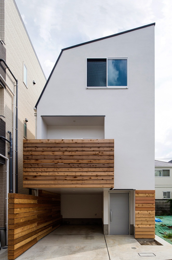 家の中はスキップフロアを用いて、狭小でもゆとりのある空間になっています。そして、ご覧の通り狭小でも、ガレージハウスは建築可能!ログハウスのような外観が、癒しを与えてくれます。