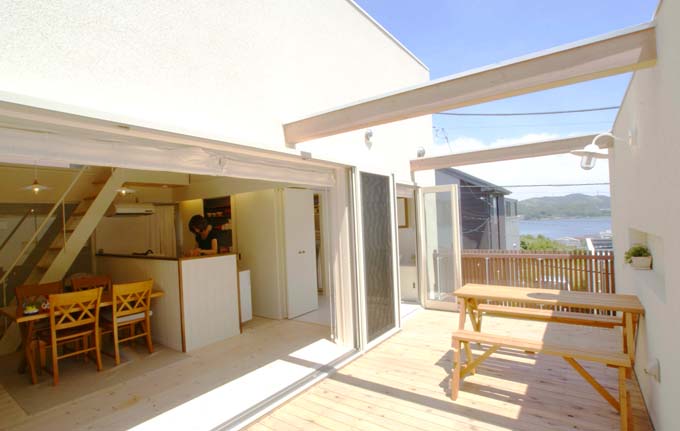 開放的なルーフテラスは、プライベート感のあるアウトドアスペース。家族の憩いスペースとして使わない手はありません。例えば朝食や、休日のブランチなど、普段の生活の場を屋外にうつすだけで非日常感が楽しめます。