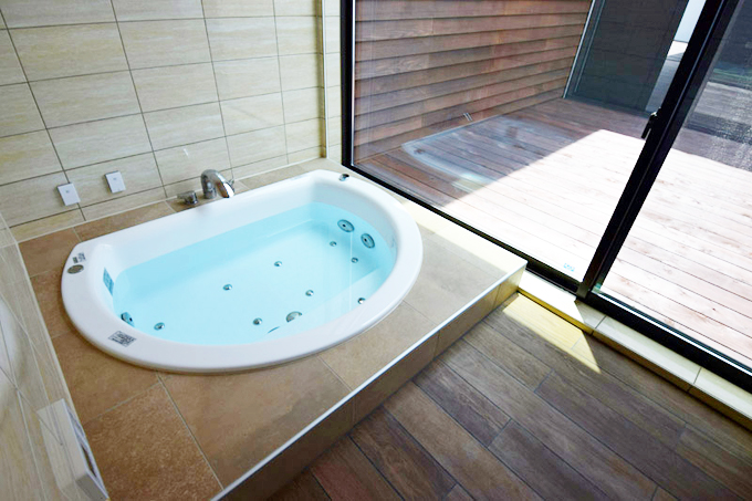 中庭タイプのウッドデッキは2階に設置された、LDKに接しています。木材のルーバーに囲まれた、プライバシーを重視した中庭タイプのウッドデッキは、くつろぎの空間として、第二のリビングとして大活躍でしょう。お友達が大勢来ても、ウッドデッキまで広がって利用すれば、広々とした雰囲気を損なわずに楽しめそうです。