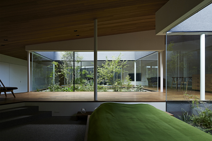 ベッドからは中庭のシンボルツリー、そしてベッド横にもなにやらグリーンが。家に居ながら、自然の中にいるかのような感覚を味わえる空間です。