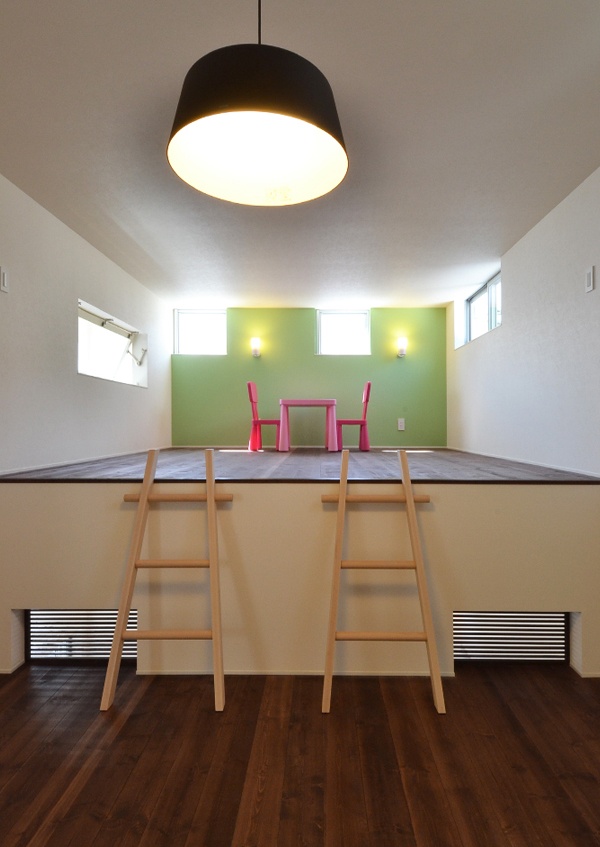 一部をロフトのようにして、移動手段は可愛い梯子。これも立派なスキップフロア。