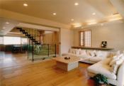 オフィスビル仕様の採光不足も最上階にトップライトを設けて階段ホールから階下まで明るい室内