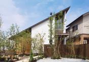平屋発想の永遠の間取りを目指した太宰府の家の庭越しの外観