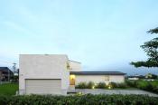 格子の耐力壁は水平ラインが美しい外観を生み出す。