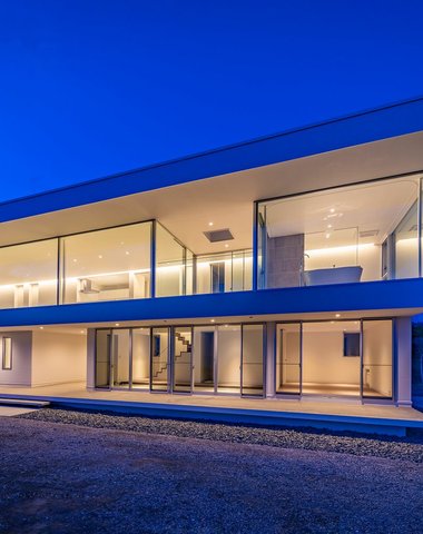 水平線の家|建物外観 夜景