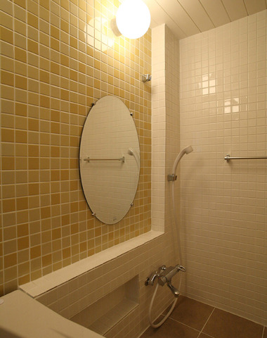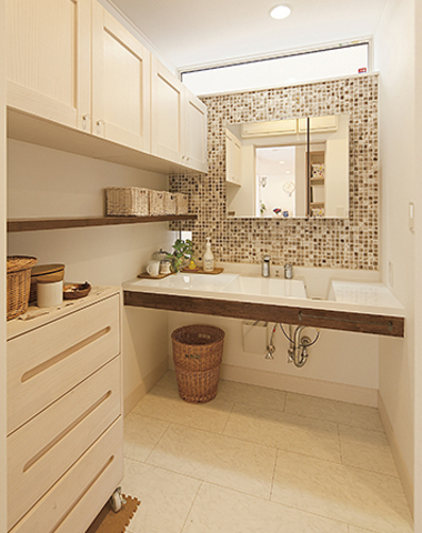 モザイクタイルが印象的な洗面化粧台