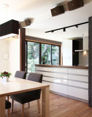 ダイニングには大開放の窓から明るくや...