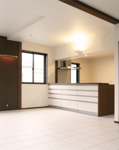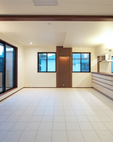 LDK床は白いタイル張りに