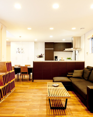 床などに使われています。素材独自の光沢がシンプルモダンの雰囲気に合います。