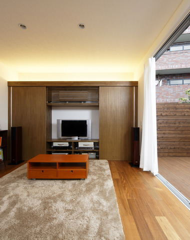 サッシや壁との組み合わせで、シンプルモダンを演出します。