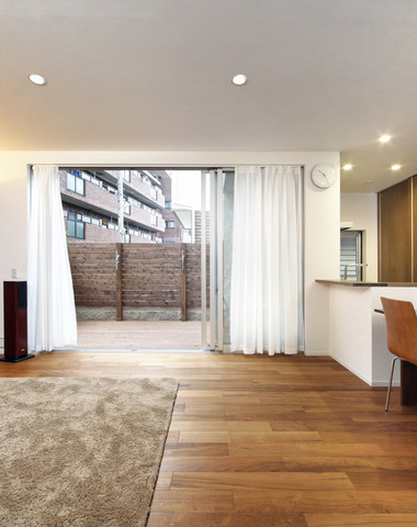 床などに使われています。素材独自の光沢がシンプルモダンの雰囲気に合います。