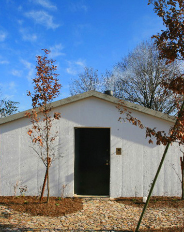 天井と壁の少し傾いた駐車場を兼ねたアプロ...