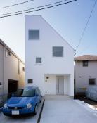 スクエアな窓をランダムに配置してリズムを与えた、真っ白でシンプルな外観