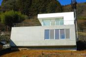 急勾配の傾斜地に浮かぶ、箱のような住宅
