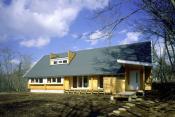 木をふんだんに使ったのログハウス。マシンカット材でモダンに仕上げました