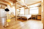 やわらかい木のテイストをこわさない、オリジナルの手づくりキッチン。 設備的なイメージをなくし、キッチンもひとつのインテリアに。