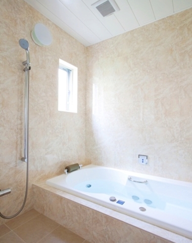 大理石調のタイル貼りにジャクソン社のジェットバスで一日の疲れをゆったりと癒します。