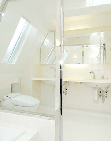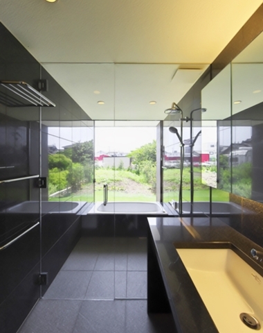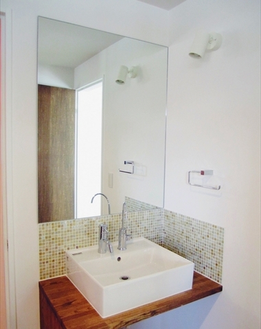 大きな鏡とガラスブロックでゆったりとした...