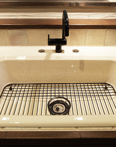 半円アーチ状の水栓がお洒落な洗面台