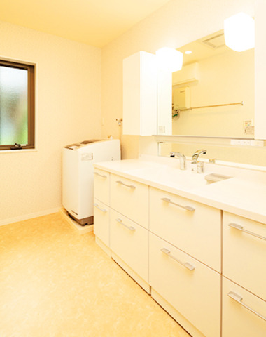 収納たっぷりの洗面スペース
